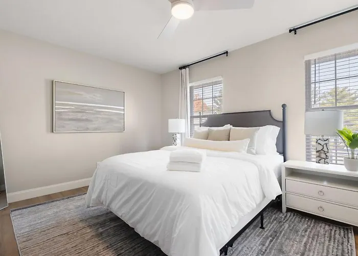 Situated around 25 minutes' walk from the University of Notre Dame, the 3-bedroom Updated 5Br Townhome 5 Min From Notre Dame Perfect For Groups South Bend villa invites guests to relax at a patio.